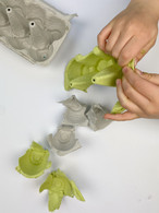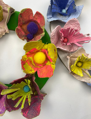 Man kann aber auch direkt Blumen (und auch Blätter) aus verschieden Teilen des Eierkartons ausschneiden.
