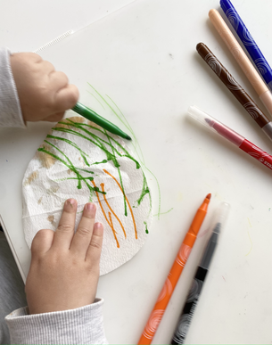 Jetzt ist dein kleiner Künstler an der Reihe. Einfach mit den Filzstiften die Eier bemalen.